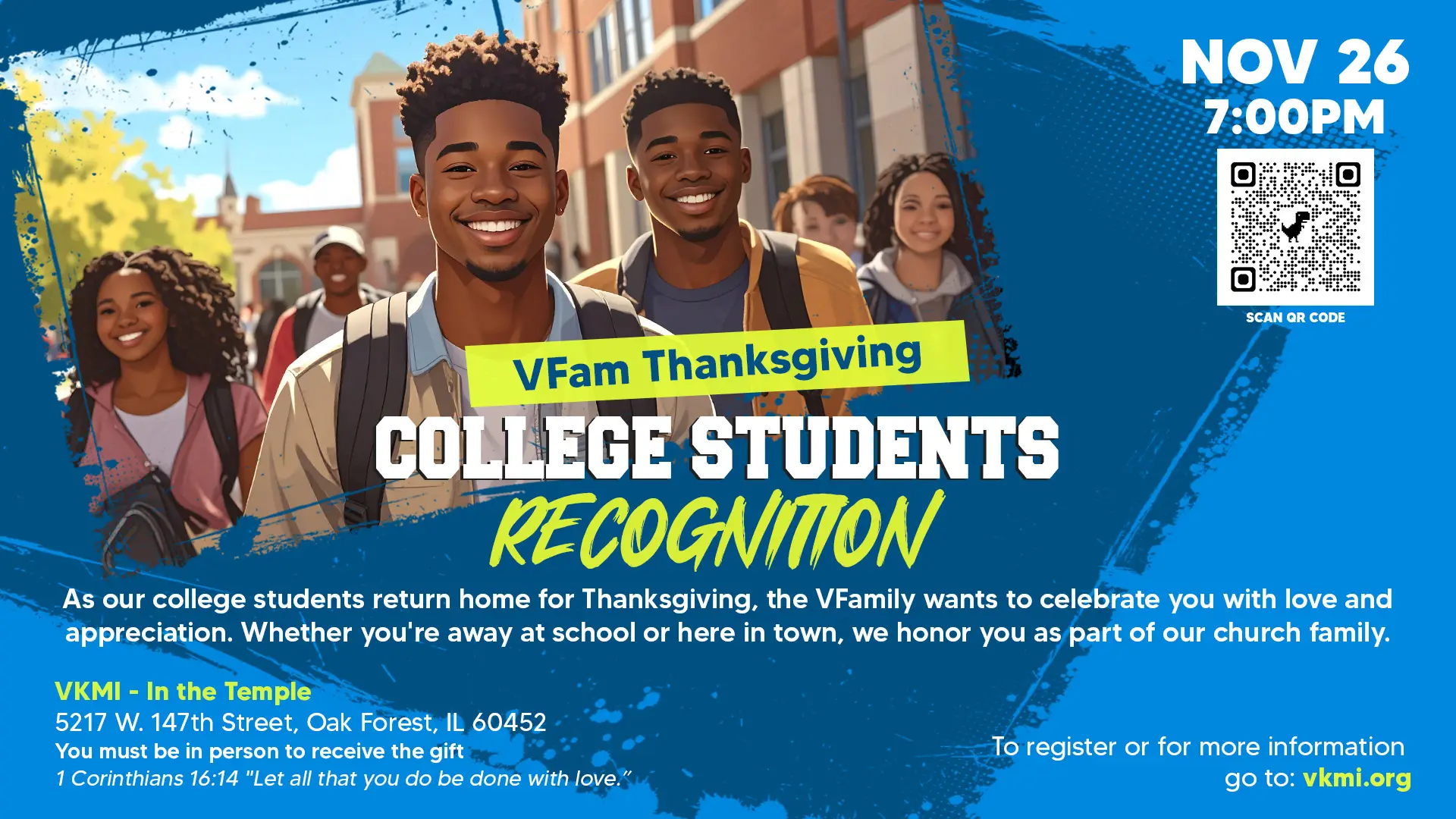 Home Events - Valley Kingdom Ministries International College Student Recognition 2025 College Student Recognition 2025 VFam Student Recognition – Pre-Thanksgiving WorshipWe will be celebrating and recognizing our VFam students during our Pre-Thanksgiving Worship service.All college students who would like to receive a student package must register in advance.Don’t miss this moment as we honor you! Register Here 00 days 00 hours 00 minutes 00 seconds © 2020 Valley Kingdom Ministries International. All Rights reserved. Web designed: TS Design Studio